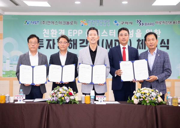 NSP통신-구미시는 25일 시청 대회의실에서 NS테크놀로지, 한국산업단지공단 경북지역본부, 바로자산운용과 함께 구미국가 3산업단지 내 EPP(발포 폴리프로필렌) 클러스터 조성을 위한 투자양해각서(MOU)를 체결했다. (사진 = 구미시)