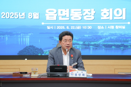 이번 회의는 정인화 시장 주재로 진행됐으며 시정 주요 당면사항과 홍보 사항을 읍면동에 전달하고 각 읍·면·동에서 추진 중인 주요 현안과 미담 사례를 공유하며 시정 전반에 대한 협업 방안을 모색했다.