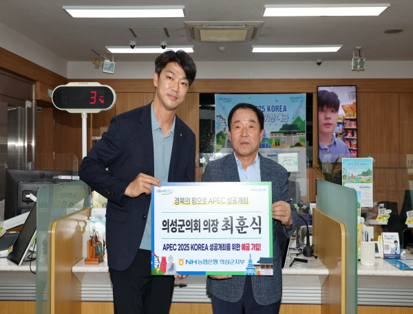 (경북=NSP통신) 조인호 기자 = 의성군의회(의장 최훈식)는 26일 2025년 아시아·태평양경제협력체(APEC) 정상회의의 성공적인 개최를 기원하며 농협을 통해 ‘APEC 2025 KOREA 성공개최를 위한 예금’에 가입했다.
