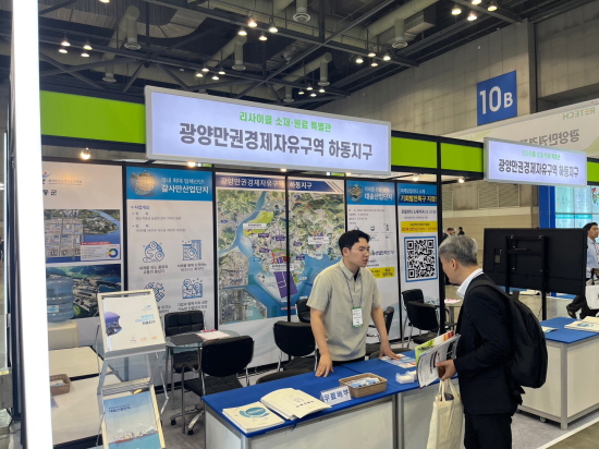 홍성주 광양경자청 하동사무소장은 “환경산업 전환이 가속화되는 가운데, 하동은 입지·교통·제도 측면에서 친환경 기업 유치에 유리한 여건을 갖추고 있다”며 “앞으로도 다양한 전시회에 참여해 기회발전특구로서의 장점을 널리 알리고 기업 유치를 위한 기반을 마련해 나갈 것이다”고 밝혔다.