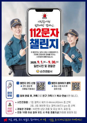 (전남=NSP통신) 남정민 기자 = 보이스피싱 범죄가 날로 지능화되는 가운데 전남 순천경찰서(서장 김대원)가 전국 경찰관서 최초로 시민 참여형 캠페인인 ‘112 문자 챌린지’를 시작했다. 이번 챌린지는 오는 9월 한 달간 진행된다.