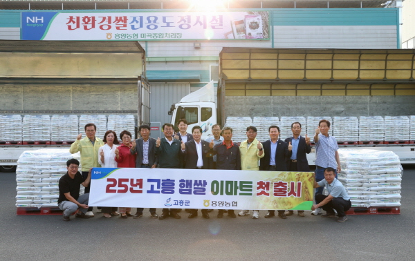 고흥군(군수 공영민)과 흥양농협(조합장 조성문)은 27일 흥양농협 미곡종합처리장에서 올해 조생종 햅쌀 ‘바다품은 쌀’ 출하 상차식을 열고 10kg 포대 1만8000여 포대(약 180톤)를 전국 이마트 매장에 납품했다. 오는 9월 초부터는 매주 1만 포대(약 100톤) 규모로 꾸준히 공급할 예정이다.