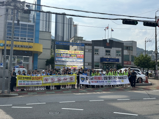 교통안전 캠페인은 공동체 치안의 일환으로 교통법규 위반으로 인한 교통사고 우려가 높은 광영파출소 앞 사거리에서 스쿨존 운전자 교통법규 의식 준수, 학생 하굣길 무단횡단 예방 등 교통안전 확보를 위해 마련됐다.