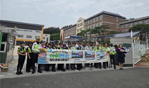 (경북=NSP통신) 조석현 기자 = 포항남부경찰서는 28일 오전 포항 유강초등학교 앞에서 안전한 등굣길 조성을 위한 교통안전 캠페인을 실시했다.