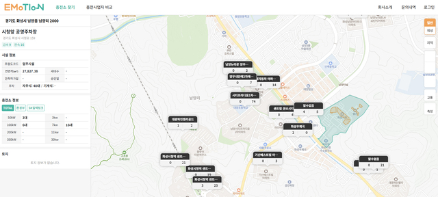 시스템은 포털 사이트에 ‘이모션플레이스’를 검색한 후 접속할 수 있으며 사이트에서는 시설유형, 충전 속도, 충전기 타입, 충전 사업자 등 유형별 전기차 충전시설을 확인할 수 있다.