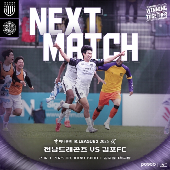 최근 연승으로 2위 수원삼성을 맹추격 중인 전남드래곤즈가 오는 8월 30일 김포 원정에서 3연승을 달성하며 상위권 경쟁에 불을 지필 수 있을지 팬들의 기대가 커지고 있다.