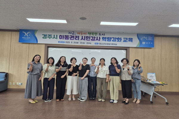 최연선 경주시 아동청소년과장은 “시민강사의 직무역량 향상을 통해 아이들이 더 안전하고 행복하게 성장할 수 있도록 지원을 아끼지 않겠다”며 “실질적인 아동권리 증진에 더욱 힘쓰겠다”고 말했다.