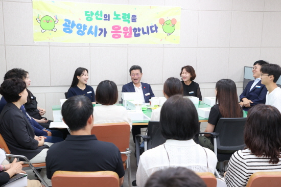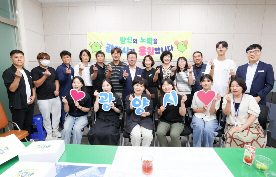 ‘광양시가 응원합니다’는 광양시장이 매월 한 부서를 찾아 직원들의 애로사항을 청취하고 자유롭게 의견을 나누는 직원 소통 행사다. 이번에 방문한 공원과는 특색 있는 명품 공원 조성, 친환경 녹색공간 확대, 시민 친화적 공원문화 확산, 여름철 물놀이터 운영 등을 통해 시민 건강 증진과 삶의 질 향상에 기여하고 있는 부서다. 정 시장은 ‘지속 가능한 녹색 도시 광양’을 위해 힘쓰는 직원들을 격려하며 간식을 전달했다.
