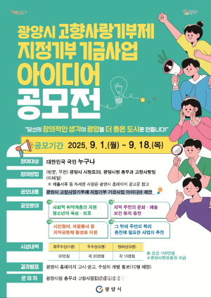 응모는 방문, 우편, 이메일을 통해 가능하며 광양시청 누리집(홈페이지) 고시·공고란에서 확인할 수 있다.