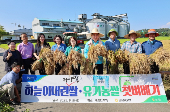이번에 수확된 벼는 광양농협 대표 브랜드인 ‘하늘이 내린 광양쌀’로 가공돼 오는 9일부터 본격 시중에 공급될 예정이다.