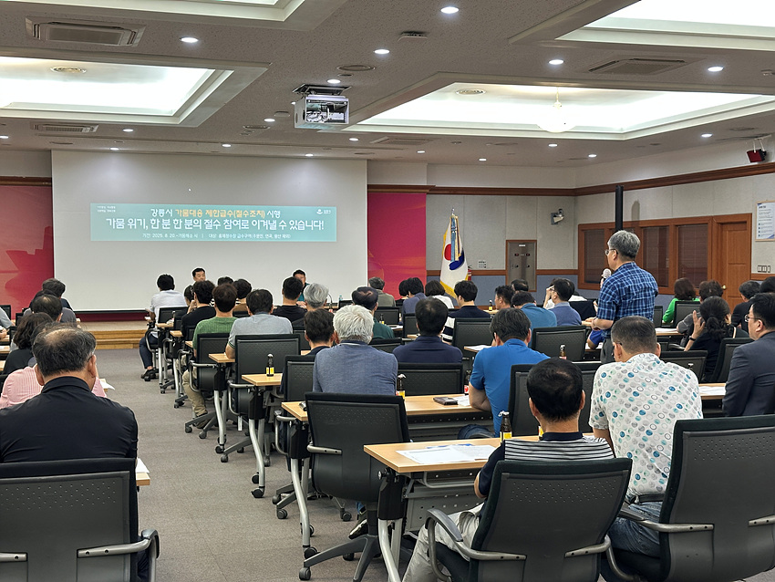 (강원=NSP통신) 조이호 기자 = 강원 강릉시(시장 김홍규)가 가뭄 극복을 위해 저수조 용량 100톤 이상 대수용가를 대상으로 6일 강릉시청 2층 대회의실에서 제한급수 관련 간담회를 개최했다.