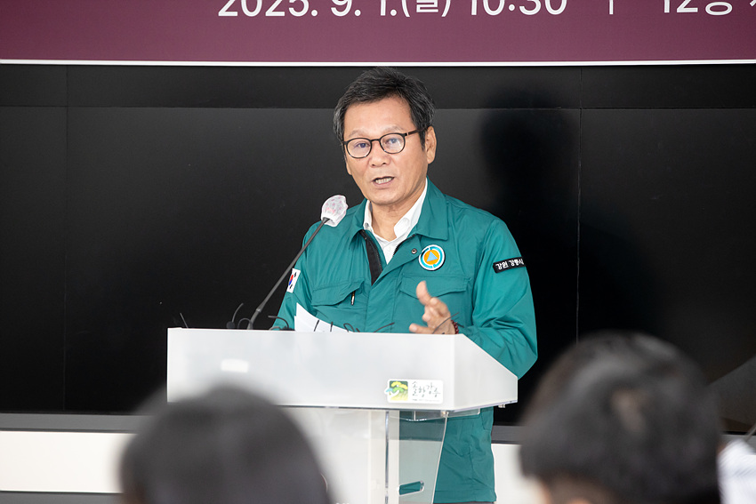 김홍규 강릉시장이 2차 기자회견을 진행하고 있는 모습. (사진 = 강릉시)