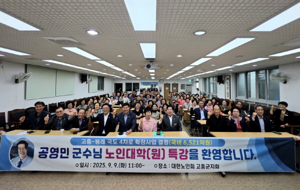(전남=NSP통신) 남정민 기자 = 전남 고흥군(군수 공영민)은 지난 9일 대한노인회 고흥군지회 부설 노인대학(원)에서 재학생 100여 명을 대상으로 군수 초청 특강을 열었다.