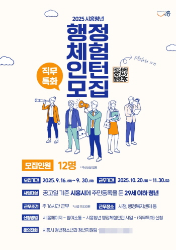 직무특화 행정체험 인턴 사업은 시흥시에 주민등록을 둔 29세 이하 청년이라면 누구나 지원할 수 있다. 신청기간은 오는 16일부터 30일까지다.