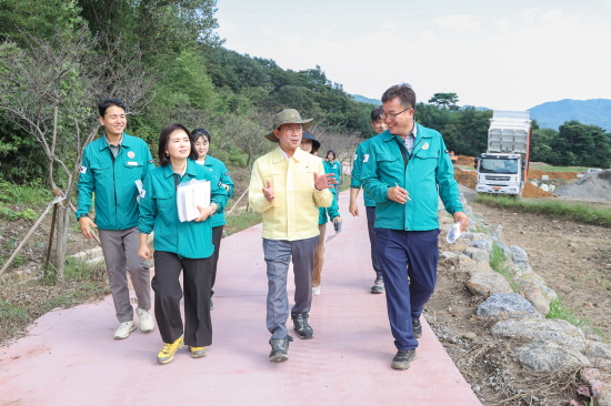 첫 일정으로 방문한 도선 천년동백정원 조성사업 현장(옥룡면 추산리 311번지 일원)은 지난 6월에 이어 다시 찾은 곳으로 도선국사의 풍수지리 사상을 반영한 자연 친화적 주제정원이 조성 중이다.