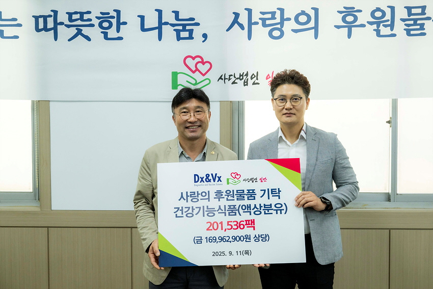 (경기=NSP통신) 조이호 기자 = 경기 김포 지역 아동들을 위한 뜻깊은 후원이 이어졌다. 글로벌 헬스케어 기업 디엑스앤브이엑스(Dx&Vx)가 김포 일만장학회(이사장 이종찬)와 함께 액상분유(오브맘) 20만여 팩을 기탁하며 복지사각지대 아이들의 건강한 성장을 응원했다.