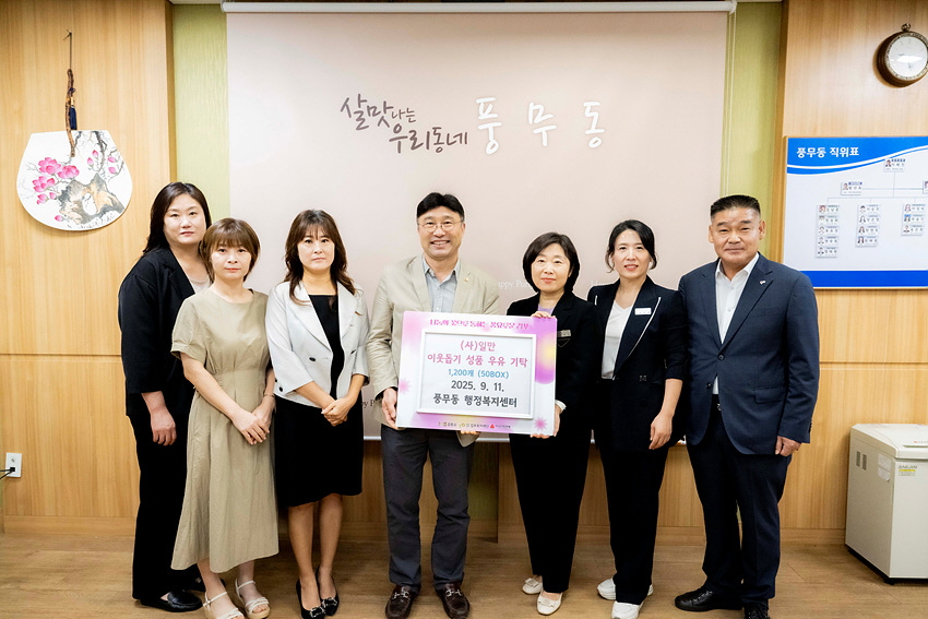 이혜진 풍무 동장은 “사단법인 일만의 따뜻한 나눔 덕분에 어르신들이 무더위 속에서도 건강을 챙기실 수 있게 됐다”며 “이번 기탁은 단순한 물품 지원을 넘어 경로당 공동체 활성화에도 큰 힘이 될 것”이라고 했다.