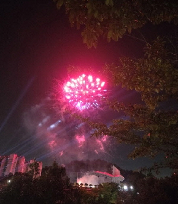 광양시가 지난 20일 늦은 밤까지 폭죽을 터트리 있다.