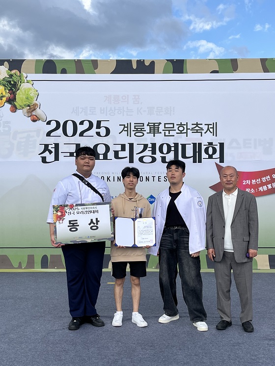 (전북=NSP통신) 김광석 기자 = 군장대학교(총장 이진숙)는 외식조리과 ’외식로드트리오팀‘이 2025년 계룡軍문화축제 전국 요리경연대회에서 동상을 수상했다고 23일 밝혔다.