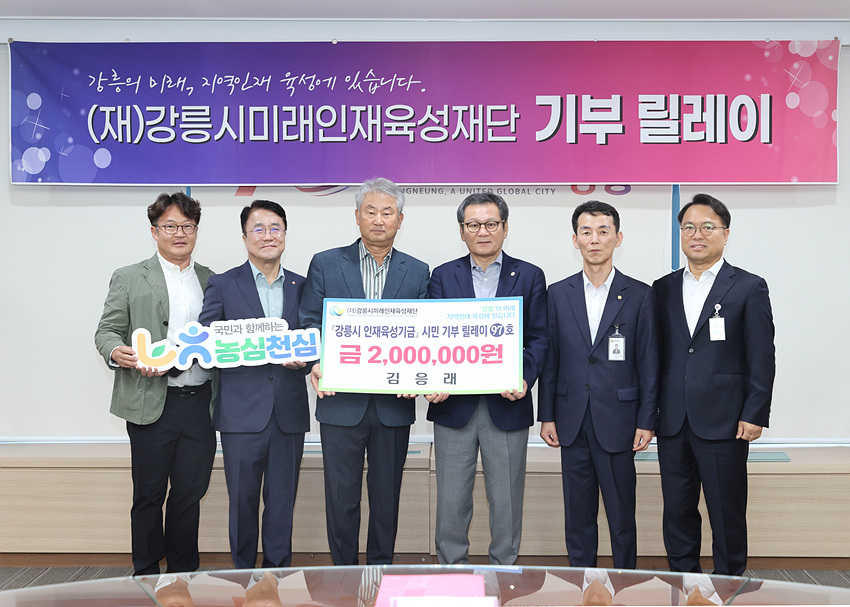 (강원=NSP통신) 조이호 기자 = 강원 강릉시(시장 김홍규) 강릉시미래인재육성재단(이사장 김상영)은 14일 김응래 씨가 지역 인재 육성을 위해 장학금 200만원을 기탁했다고 밝혔다.