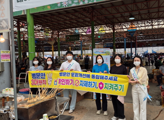 특히 추석 연휴를 앞둔 지난 1일 광양읍 5일시장 일원에서 ‘병문안 문화개선 캠페인’을 전개하고 병문안 문화개선 3대 원칙인 ▲확인하기(병문안 가능시간·장소 확인) ▲자제하기(환자를 위해 병실 면회 자제) ▲지켜주기(손 위생, 기침 예절 등 예방수칙 지키기)의 생활 속 실천을 시민들에게 당부했다.