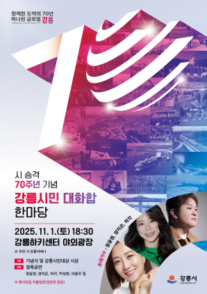 (강원=NSP통신) 조이호 기자 = 강원 강릉시(시장 김홍규)는 11월 1일 강릉하키센터 야외광장에서 시 승격 70주년을 기념하는 ‘강릉시민 대화합 한마당’을 개최한다.