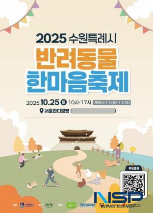 (경기=NSP통신) 김종식 기자 = 오는 25일 오전 10시부터 경기 수원특례시 권선구 서둔동에 위치한 서호잔디광장에서 ‘2025 수원특례시 반려동물 한마음 축제’가 개최된다.