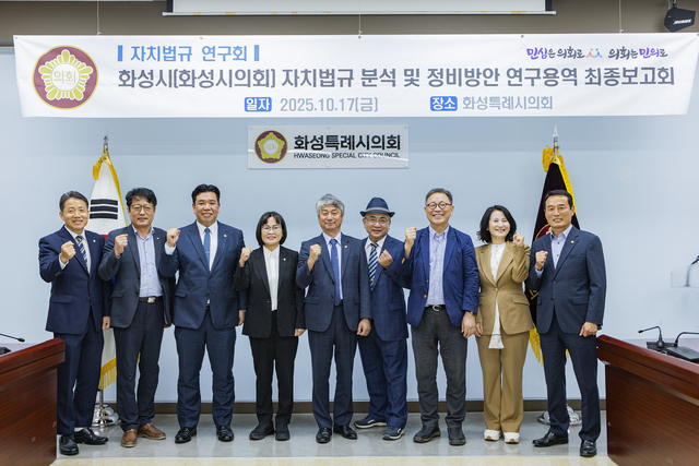 (경기=NSP통신) 조현철 기자 = 경기 화성시의회 의원연구단체인 ‘자치법규 연구회(대표의원 장철규)’가 17일 상임위원회 회의실에서 연구용역 최종보고회를 가졌다.