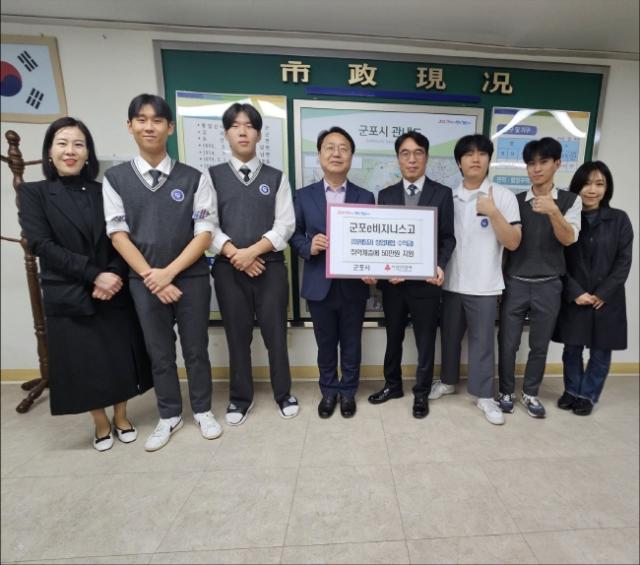 (경기=NSP통신) 정희순 기자 = 경기 군포e비즈니스고등학교(교장 장인섭) 마케팅과 학생들이 ‘청소년 비즈쿨(Biz-Cool)’ 창업체험 교육을 통해 얻은 수익금 전액을 군포시청에 기탁했다.