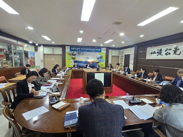 이날 보고회에는 조상래 군수를 비롯해 정창모 부군수, 실과소장 등 20여 명이 참석했다.
