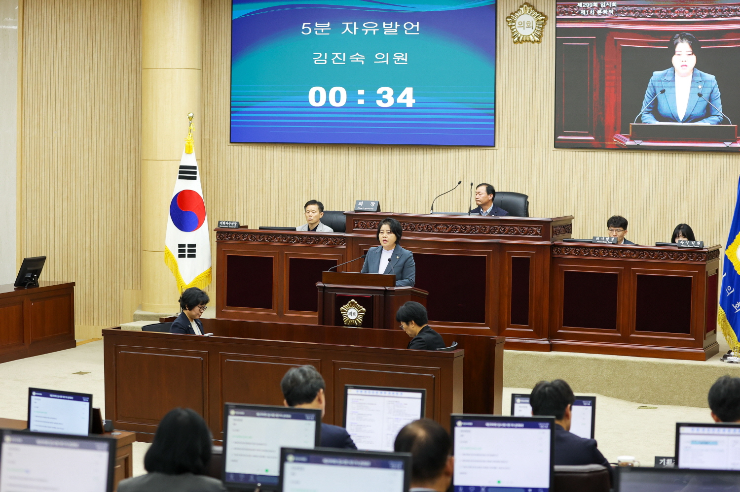 이날 안건 의결에 앞서서는 김진숙 의원이 299회 임시회에 제출된 ‘2025년 제4차 수시분 공유재산관리계획안’ 중 본오2동 공공복합청사 건립 변경 안건 관련해 시 행정의 신뢰성과 책임성이 부족하다는 취지로 5분 자유발언을 실시했다.