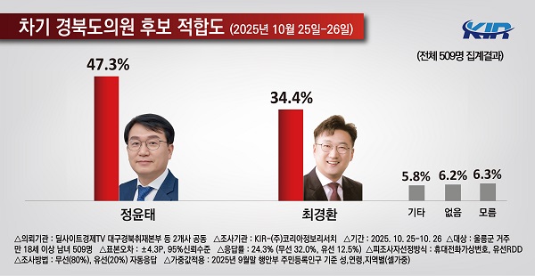 경상북도의원(울릉군선거구), ‘정치신인’ 정윤태 47.3% vs ‘4선 군의원’ 최경환 34.4%