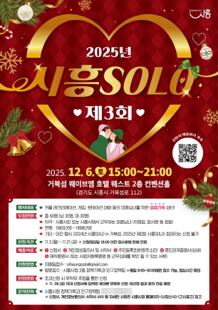 (경기=NSP통신) 서국현 기자 = 경기 시흥시(시장 임병택)는 만남의 기회가 부족한 청춘남녀들에게 소중한 인연을 만날 기회를 제공하고 결혼 친화 분위기를 조성하기 위해 ‘2025년 제3회 시흥 솔로(SOLO)’ 행사를 개최하고 미혼남녀 참가자를 모집한다.