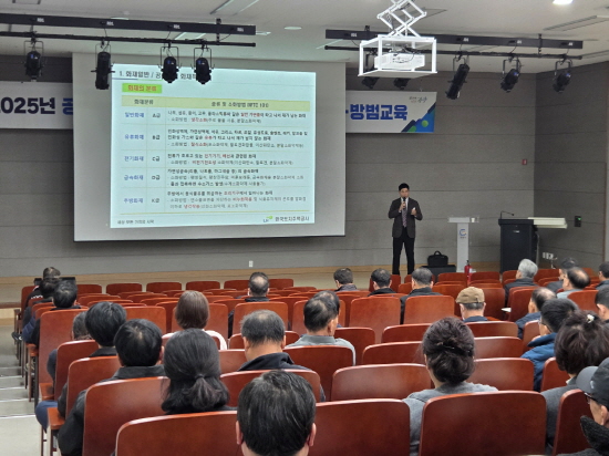 (전남=NSP통신) 김성철 기자 = 광양시는 지난 25일 성황스포츠센터 세미나실에서 지역 내 의무관리대상 공동주택의 시설물안전관리책임자, 전기관리자, 경비책임자, 입주자대표회의 구성원 등 150여 명을 대상으로 ‘2025년 공동주택 소방안전·방범 및 입주자대표회의 구성원 교육’과 ‘전기안전사고 예방교육’을 실시했다고 밝혔다.