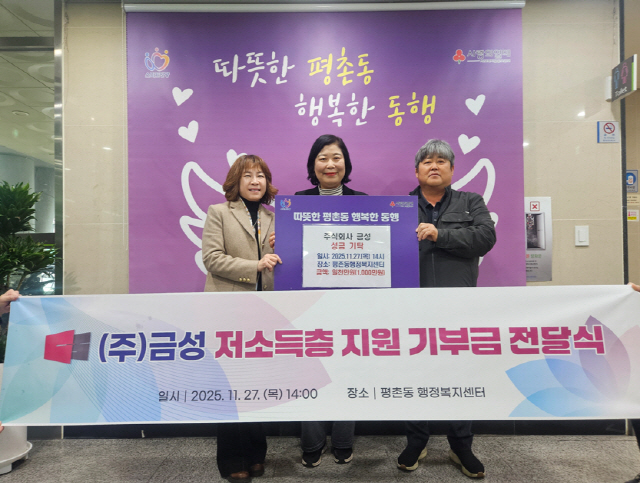 강윤덕 평촌동장은 “이웃돕기 성금을 기탁해주신 금성에 감사드리며 기탁된 성금은 금성 모든 임직원들의 소중한 마음을 담아 관내 어려운 이웃들이 따뜻하고 행복한 연말연시를 지내실 수 있도록 잘 전달하겠다”고 말했다.