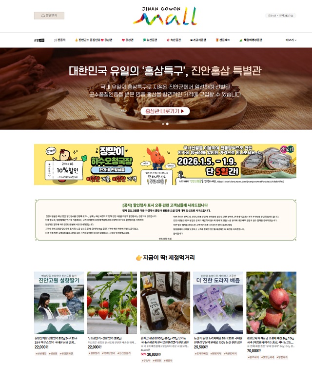 (전북=NSP통신) 김광석 기자 = 전북 진안군 직영 온라인 쇼핑몰 ‘진안고원몰’이 2025년 연 매출 30억원을 달성했다고 5일 밝혔다.