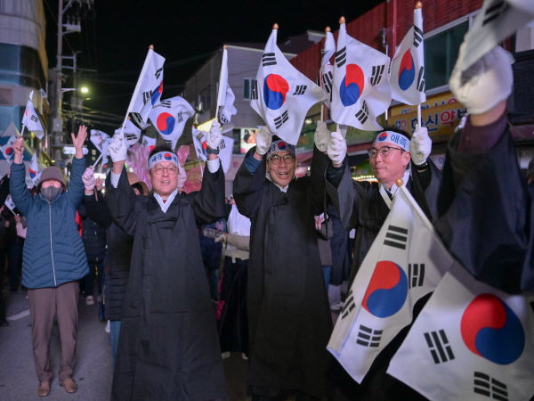 특히 전야제의 하이라이트인 ‘횃불 대행진’에는 수많은 군민과 관광객이 직접 횃불을 들고 영해 시가지를 행진해 107년 전 영해 장터를 가득 메웠던 뜨거운 함성을 몸소 재현하며 깊은 감동을 선사했다.