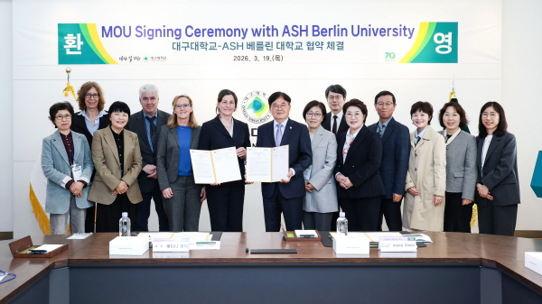 (경북=NSP통신) 김대원 기자 = 대구대학교(총장 박순진)가 독일 애쉬 베를린 대학교(Alice Salomon Hochschule Berlin, 총장 베티나 뵐터)와 교육 및 연구 분야 상호 협력을 위한 업무협약(MOU)을 체결했다.