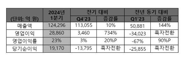 (Seoul=NSP NEWS AGENCY) = 韓国SKハイニックスが25日、決算発表会を開き、K-IFRS基準で今年第1四半期の売上高12兆4296億ウォン、営業利益2兆8860億ウォン(営業利益率23%)、純利益1兆9170億ウォン(純利益率15%)の経営実績を記録したと発表した。