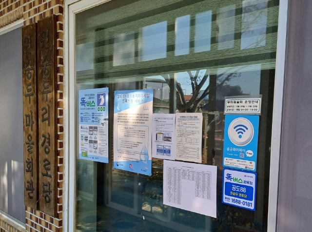 경로당에 부착된 수요응답형 똑버스 전화호출 서비스 안내문. (사진 = 안성시)