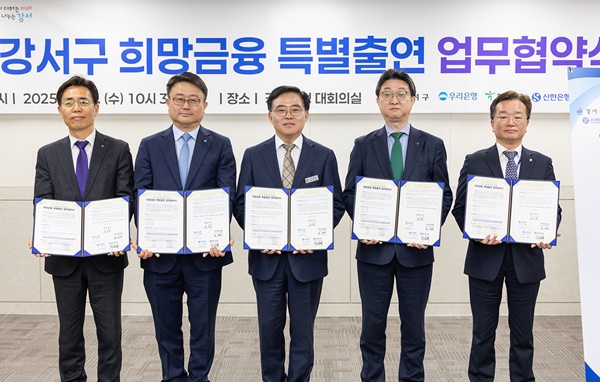 (서울=NSP통신) 강은태 기자 = 서울시 강서구(구청장 진교훈)는 26일 구청 대회의실에서 우리은행, 하나은행, 신한은행, 서울신용보증재단과 ‘중소기업·소상공인 융자 지원을 위한 업무협약’을 체결하고 중소기업과 소상공인 지원에 나섰다.