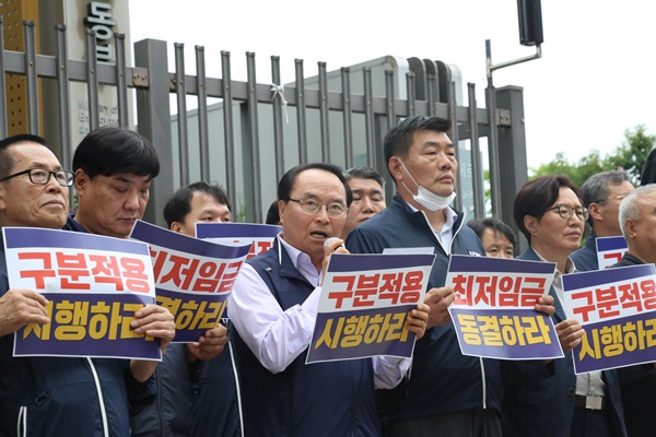 또 유 회장직무대행은 “현재 소상공인 사업장 종사자가 1000만 명이 넘는다. 모두 함께 살아가는 이웃이고 똑같은 국민이다”며 “최저임금위원회는 생존을 위해 최저임금 구분 적용을 요청하는 소상공인의 목소리를 외면하지 말아 달라”고 호소했다.