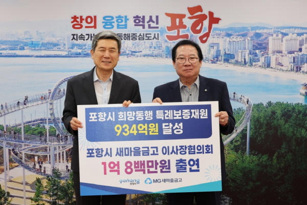 포항시 새마을금고 이사장협의회에서 특례보증재원을 추가로 출연함에 따라 포항시는 지금까지 민관협력 매칭 사업을 통해 시행된 희망동행 914억 특례 보증에 이어 총 935억 6천만 원의 특례보증재원을 달성하게 됐다.
