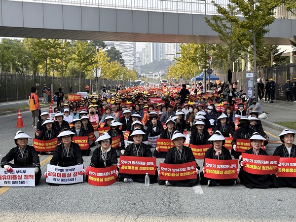(서울=NSP통신) 강은태 기자 = 대한미용사회중앙회(회장 이선심) 소속의 분노한 전국의 미용사들이 8일 오후 1시 세종시 보건복지부 앞 도로에서 최근 복지부가 공중위생관리법 시행규칙에 입법 예고한 공유미용실 철회를 촉구하는 시위를 전개했다.