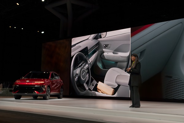 올라비시 보일(Olabisi Boyle) 현대차 미국판매법인 제품 기획 및 모빌리티 전략 담당 상무가 '디 올 뉴 코나'를 설명하고 있다.