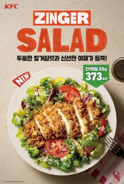 KFC는 최근 다이어트 식단과 샐러드 메뉴에 대한 관심이 높아지고 있는 트렌드에 발맞춰 두툼한 닭가슴살과 신선한 야채가 푸짐하게 들어간 징거샐러드를 선보이게 됐다고 밝혔다.