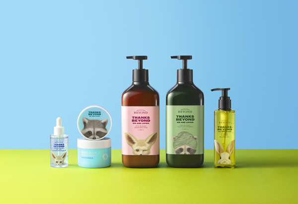 땡스에디션은 ▲바디워시, ▲샴푸, ▲페이셜폼, ▲수분크림, ▲앰플 등 총 5종으로 구성됐고 각 제품 패키지 디자인에는 비욘드의 동물과 지구 사랑 실천에 고마움을 표현하는 토끼, 라쿤, 사막여우 등 동물들의 귀여운 모습이 담겼다.