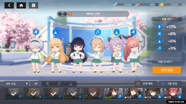 이외 커스텀 육성 콘텐츠인 아카데미를 통해 기호에 맞게 캐릭터들의 일정 스탯을 성장시키며, 강점을 강화하거나 약점을 보완하는 등의 전략적 팀 관리가 가능하다.