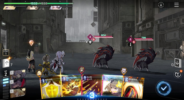 ◆카드 기반 전략 전투와 로그라이크의 결합 = 카제나의 전투는 RPG + 카드 덱빌딩 + 로그라이크가 융합된 방식으로 진행된다. 이용자는 요원별 기본 카드와 고유 카드를 활용해 턴제 전투를 수행하며, 한 턴에 사용할 수 있는 포인트가 제한돼 있어 전략적 선택이 필수적이다.