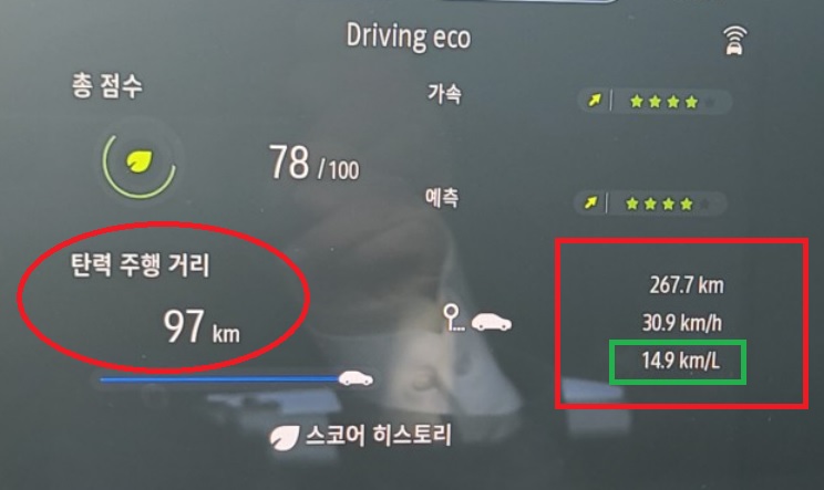 시내 도로와 농로 길 등 다양한 도로 조건에서 총 267.7km를 평균속도 30.9km/h의 저속으로 주행한 후 체크 한 르노XM3 1.6 GTe 모델의 실제 복합 연비는 놀랍게도 14.9km/l를 기록했다.